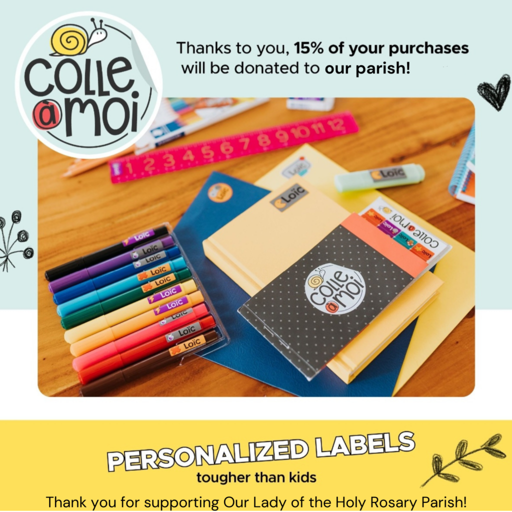 Whether it’s for your children’s daycare, summer camp, or you just want to get ahead of next fall’s school supplies list, we thank you for supporting our Parish! Visit http://www.colleamoi.com to place your order!